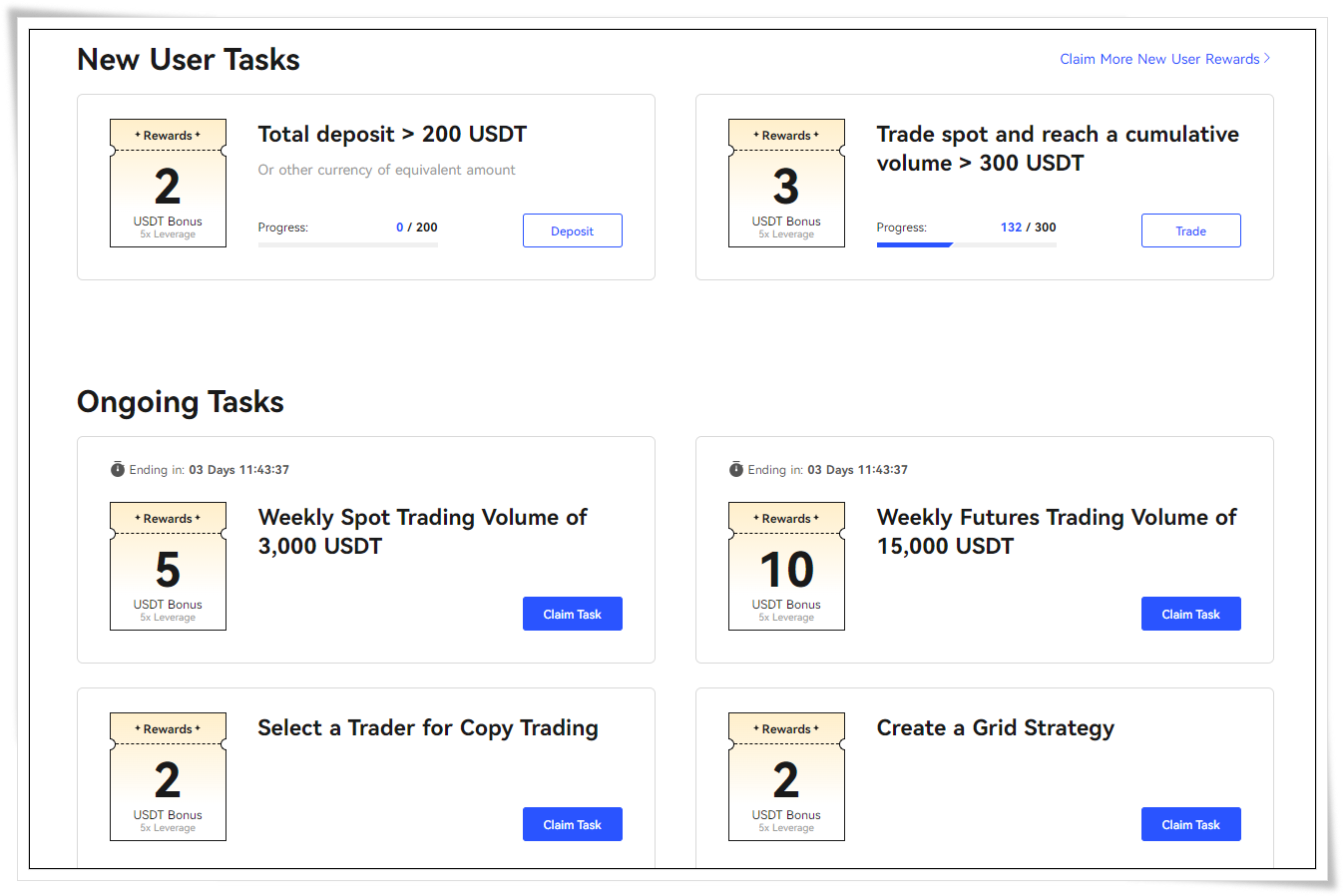 선물 누적 거래량이 10,000USDT 도달 : 10USDT 증정금